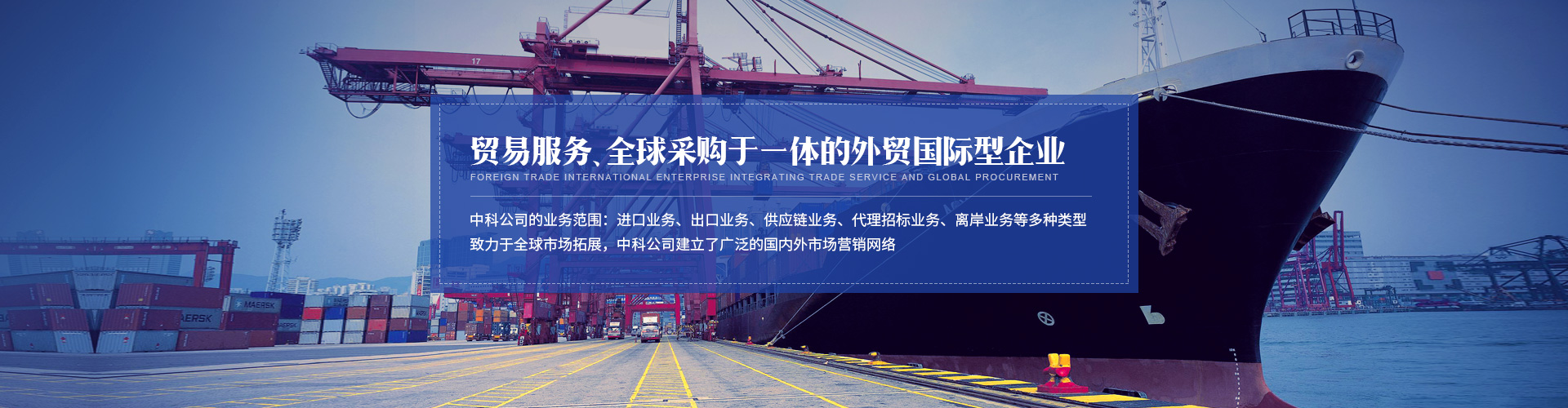 廣東省中科進(jìn)出口有限公司成立于1993年,是由廣東省科學(xué)院控股有限公司控股的專(zhuān)業(yè)外貿(mào)公司。中科公司成立以來(lái),始終致力于為客戶(hù)提供高效,優(yōu)質(zhì)的服務(wù),秉承規(guī)范守法的經(jīng)營(yíng)作風(fēng)。三十年來(lái),不忘初心,風(fēng)雨兼程,使得公司維持著持續(xù)、高效、穩(wěn)健的發(fā)展。 中科公司的業(yè)務(wù)范圍涵蓋了進(jìn)口業(yè)務(wù)、出口業(yè)務(wù)、供應(yīng)鏈業(yè)務(wù)、代理招標(biāo)業(yè)務(wù)、離岸業(yè)務(wù)等多種類(lèi)型。致力于全球市場(chǎng)拓展,中科公司建立了廣泛的國(guó)內(nèi)外市場(chǎng)營(yíng)銷(xiāo)網(wǎng)絡(luò)。 展望未來(lái),中科公司將以“集貿(mào)易服務(wù)、全球采購(gòu)于一體,爭(zhēng)做中國(guó)一流的外貿(mào)國(guó)際型企業(yè)”為目標(biāo),不斷深化服務(wù)內(nèi)涵、提升服務(wù)價(jià)值,為推動(dòng)經(jīng)濟(jì)繁榮、社會(huì)發(fā)展做出積極貢獻(xiàn)!